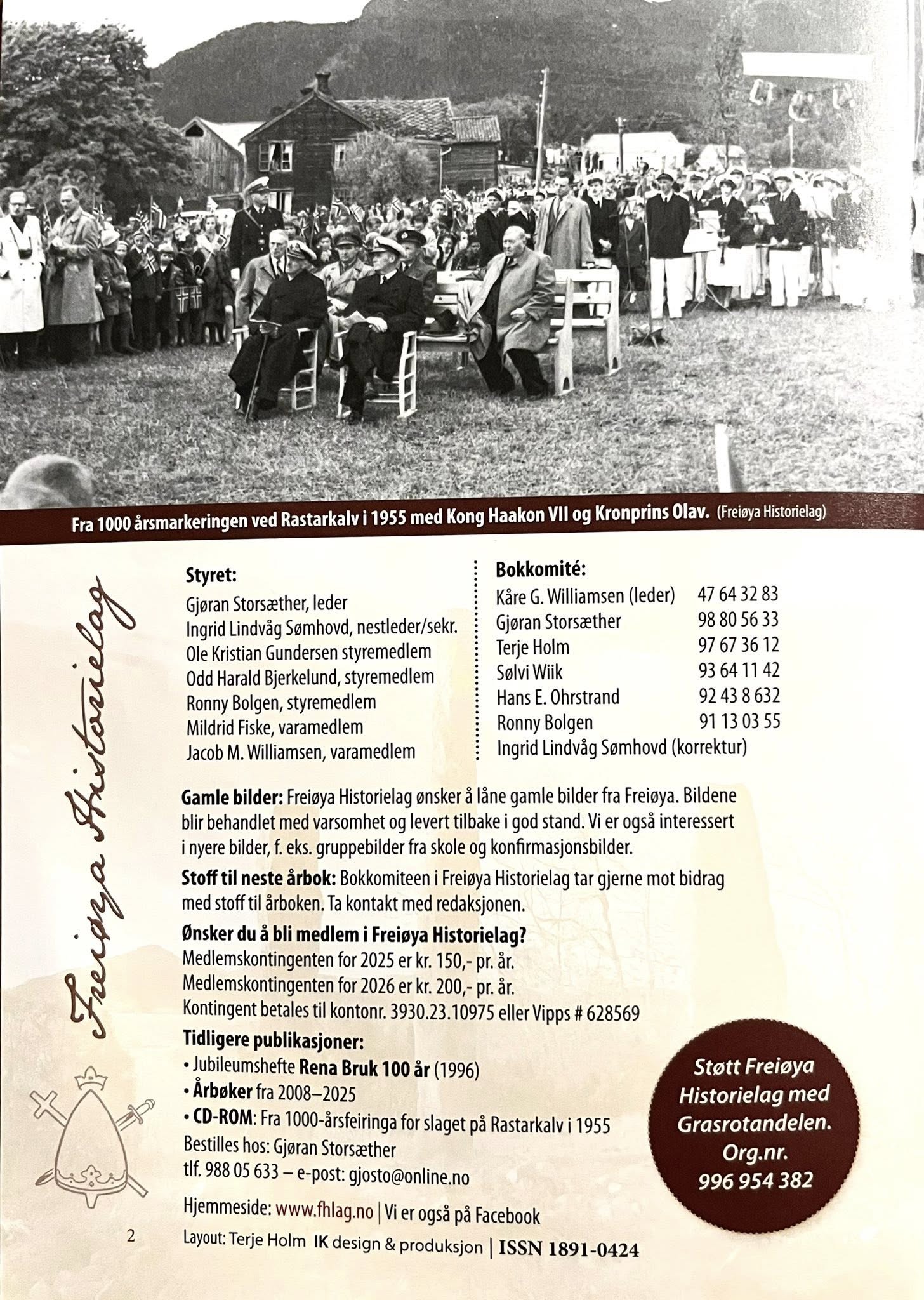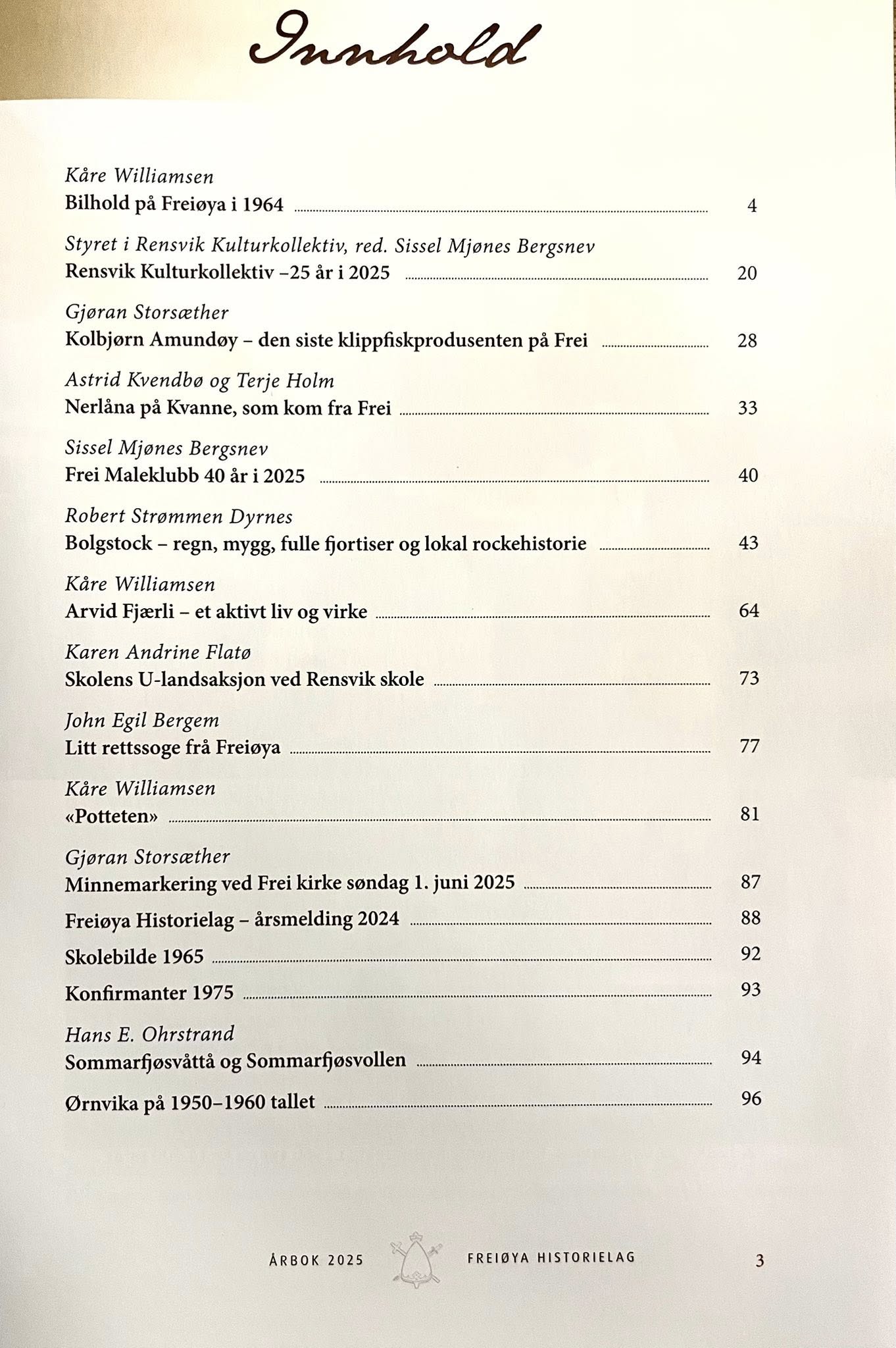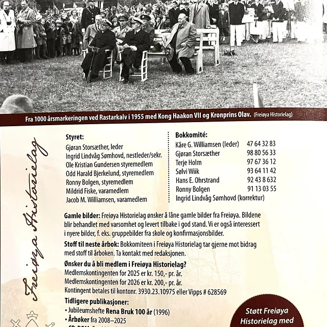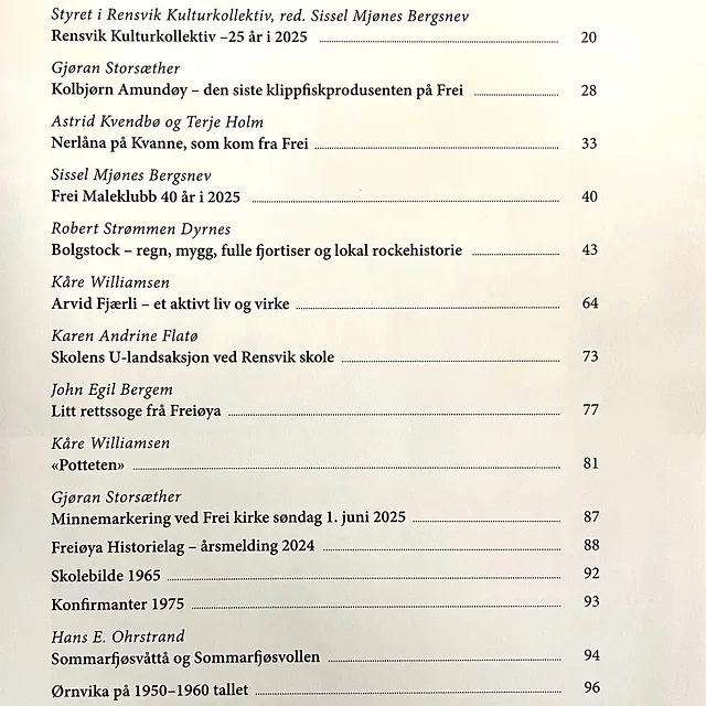 Årbok 2025 er ferdig og legges ut til salg på Ark-butikkene i Kristiansund, Prix Storbakken og begge Bunnprisbutikkene på Frei. Årboka kan også bestilles ved å sende forespørsel på e-post til gjosto@online.no eller SMS til 98805633.